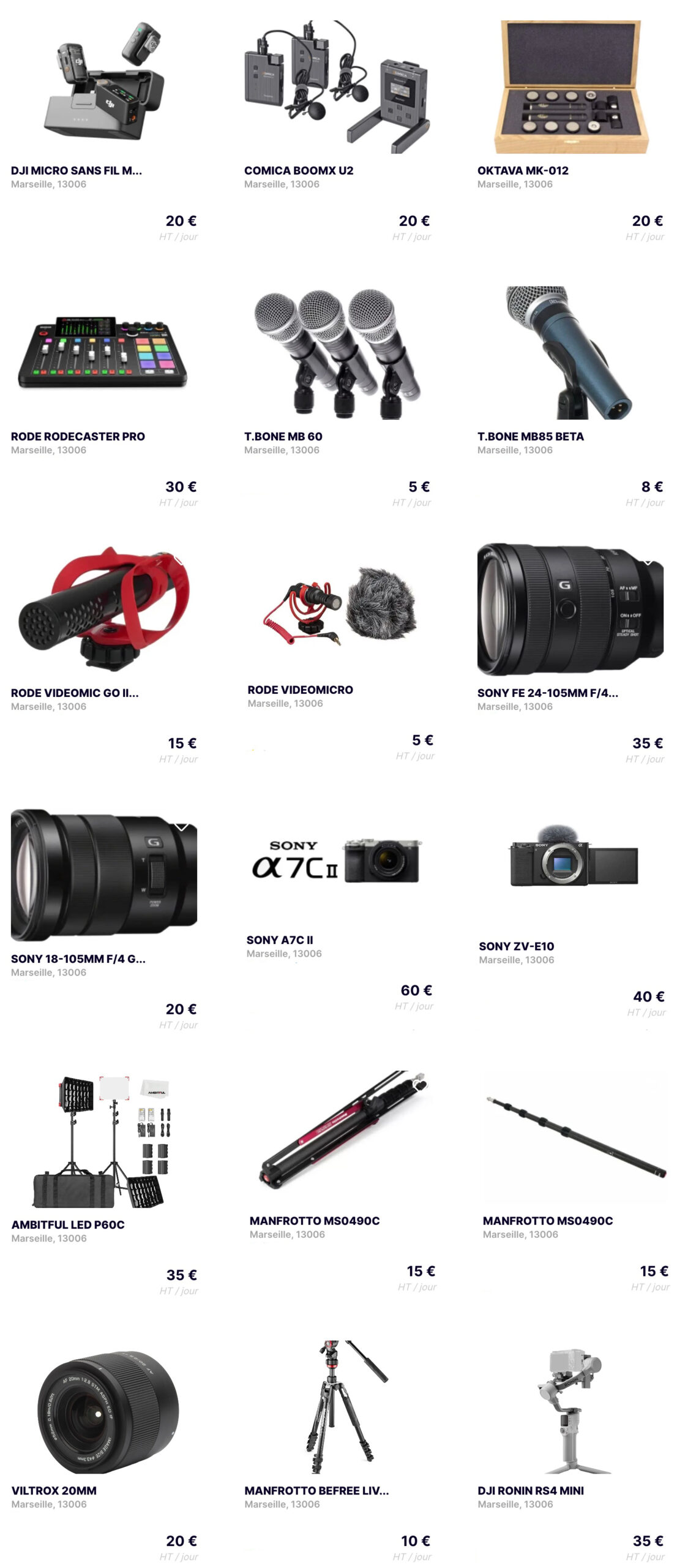 L’association met à disposition son matériel audiovisuel lorsqu’il n’est pas utilisé. Elle propose également à chacun de ses membres d’y inscrire son propre matériel, qui rejoint ainsi le parc commun. De cette manière, les outils de chacun peuvent bénéficier à tous, dans le cadre de conditions de prêt clairement définies.